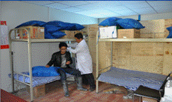 (2)建設(shè)高原工地氧吧室和工地醫(yī)務(wù)室,為員工提供基本的健康醫(yī)療保障。施工單位均按要求設(shè)置了工地醫(yī)務(wù)室,配備滿足需要的具有高原疾病診治經(jīng)驗的專業(yè)醫(yī)生和處治高原疾病的基本藥物,可對多數(shù)常見疾病進行基本醫(yī)療處治,避免因救助不及時導(dǎo)致病情惡化或危及生命。為防止發(fā)生嚴重高原反應(yīng),施工單位在項目經(jīng)理部和洞口附近的工地休息室均設(shè)置了吸氧室,購置了多臺可直接加入天然水分解制氧的可移動式制氧機,配備了足夠數(shù)量的輕便式氧氣袋,充氧后放置在項目經(jīng)理部及洞口休息室備用。