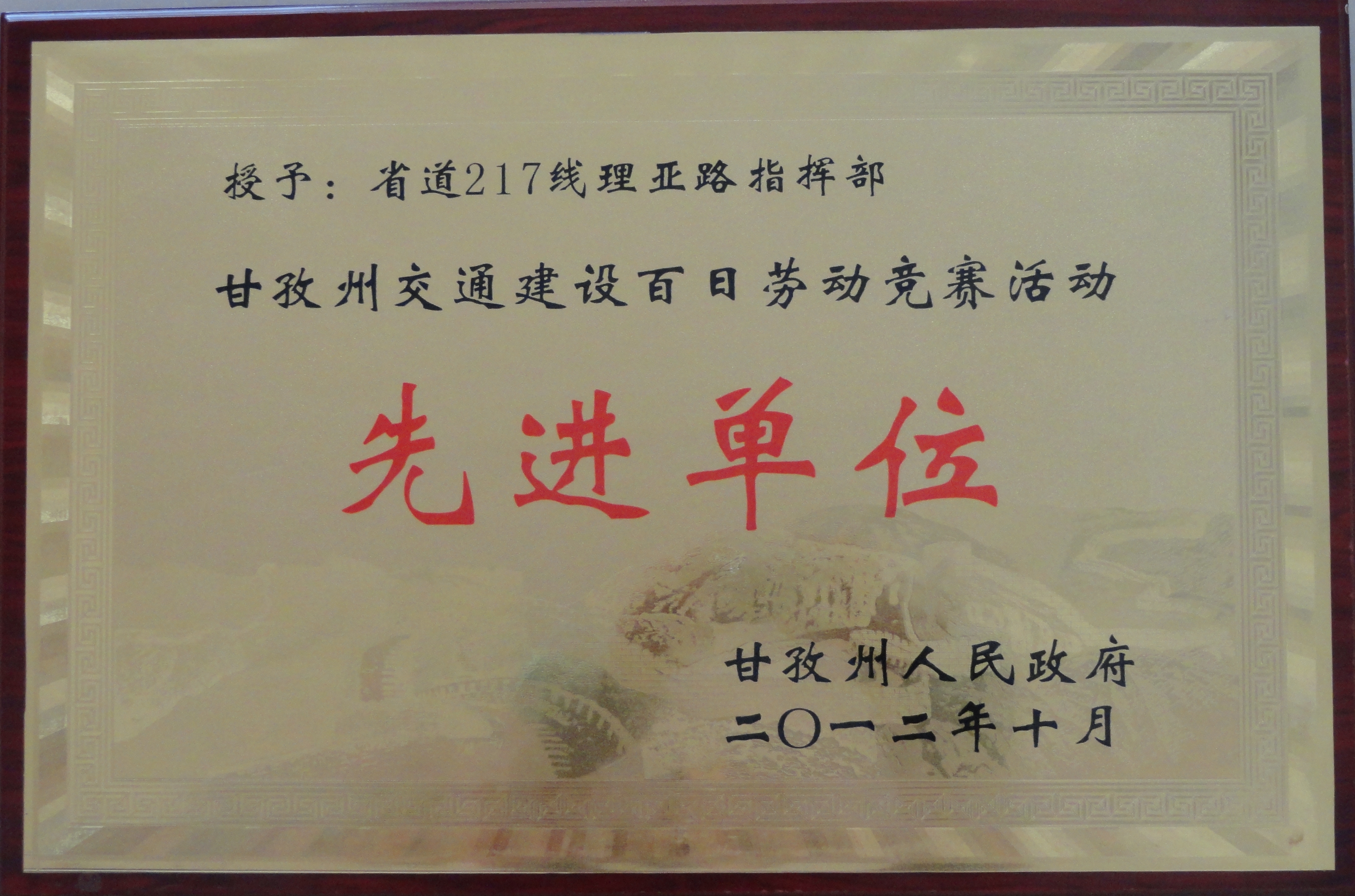 為認(rèn)真貫徹落實2012年7月8日甘孜州交通三年攻堅督導(dǎo)會議精神,積極響應(yīng)州委州政府提出開展“百日勞動競賽”活動要求,達(dá)到“進(jìn)度明顯加快,質(zhì)量明顯提升,管理明顯加強(qiáng),環(huán)境明顯改善”的活動總體目標(biāo),國道318線東海路指揮部和S216/S217線理亞路指揮部于7月20日至10月30日在東海路和理亞路全線開展了“百日勞動競賽”活動,并取得驕人業(yè)績。