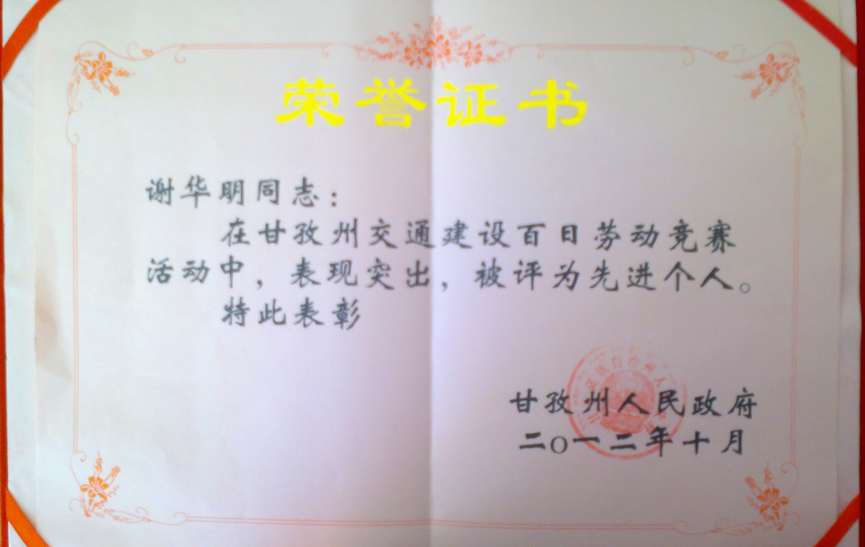 日前,在甘孜州“交通建設(shè)百日勞動競賽”活動中興蜀公司創(chuàng)造佳績,省道217線理亞路指揮部榮獲“甘孜州交通建設(shè)百日勞動競賽活動先進(jìn)單位”榮譽(yù)稱號,國道318線東海路指揮部陳昕、謝華明、向貴學(xué)三名同志榮獲“甘孜州交通建設(shè)百日勞動競賽活動先進(jìn)個人” 榮譽(yù)稱號。