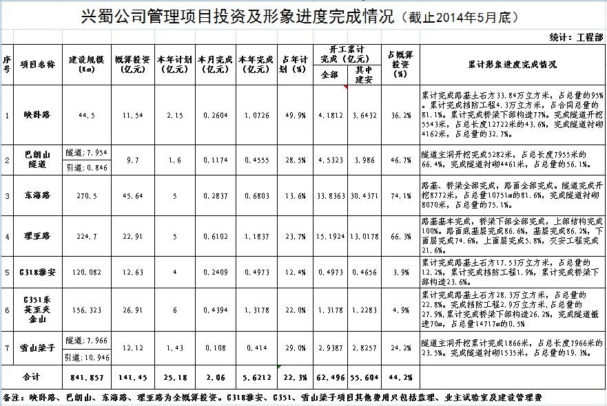 公司管理項(xiàng)目投資及形象進(jìn)度完成情況(截至2014年5月底)