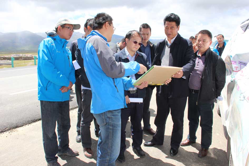 2014年8月28日至29日,四川省交通運(yùn)輸廳張琪副廳長(zhǎng)、廳公路局于天才副局長(zhǎng)一行調(diào)研公司甘孜州工程項(xiàng)目建設(shè),并看望慰問了奮戰(zhàn)在高原一線的建設(shè)職工。