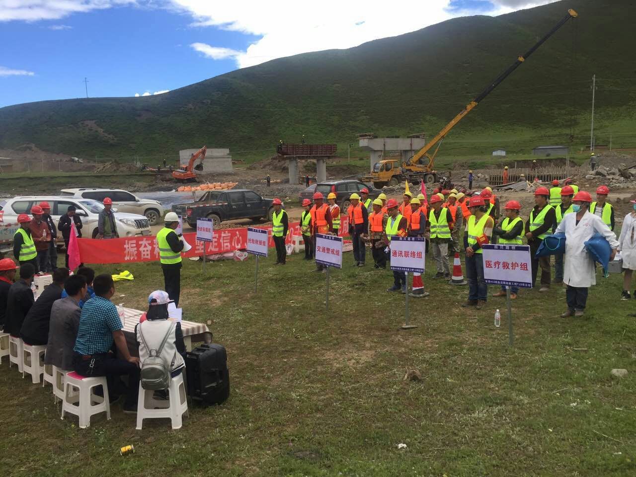 為提升各參建人員的自我保護(hù)意識(shí)和防范高原病能力, 2017年7月25日,興蜀公司S454線色泥路指揮部組織各參建隊(duì)伍開(kāi)展了高原病防治應(yīng)急演練。