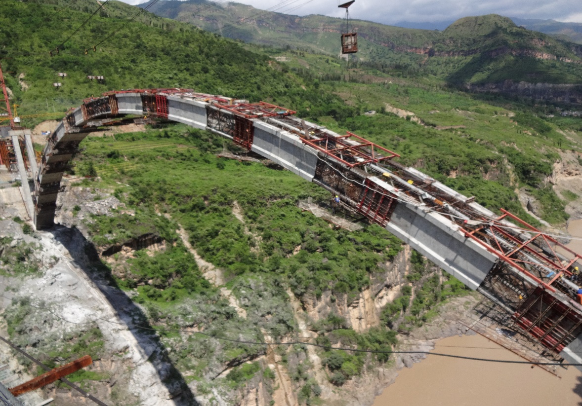 興蜀公司涼山溜索改橋指揮部布拖項目正進行拱橋外包混凝土施工。拱圈作為拱橋主要承重系統(tǒng),跨越金沙江垂直高度230米,施工安全風險極大,是整個拱橋施工中的關鍵工序。項目自進場以來,興蜀公司作為代建業(yè)主,帶領全體參建人員團結一致、迎難而上,在確保質量和安全的前提下優(yōu)化施工流程,加大監(jiān)管力度,全力拼搶工期,確保項目施工順利推進。