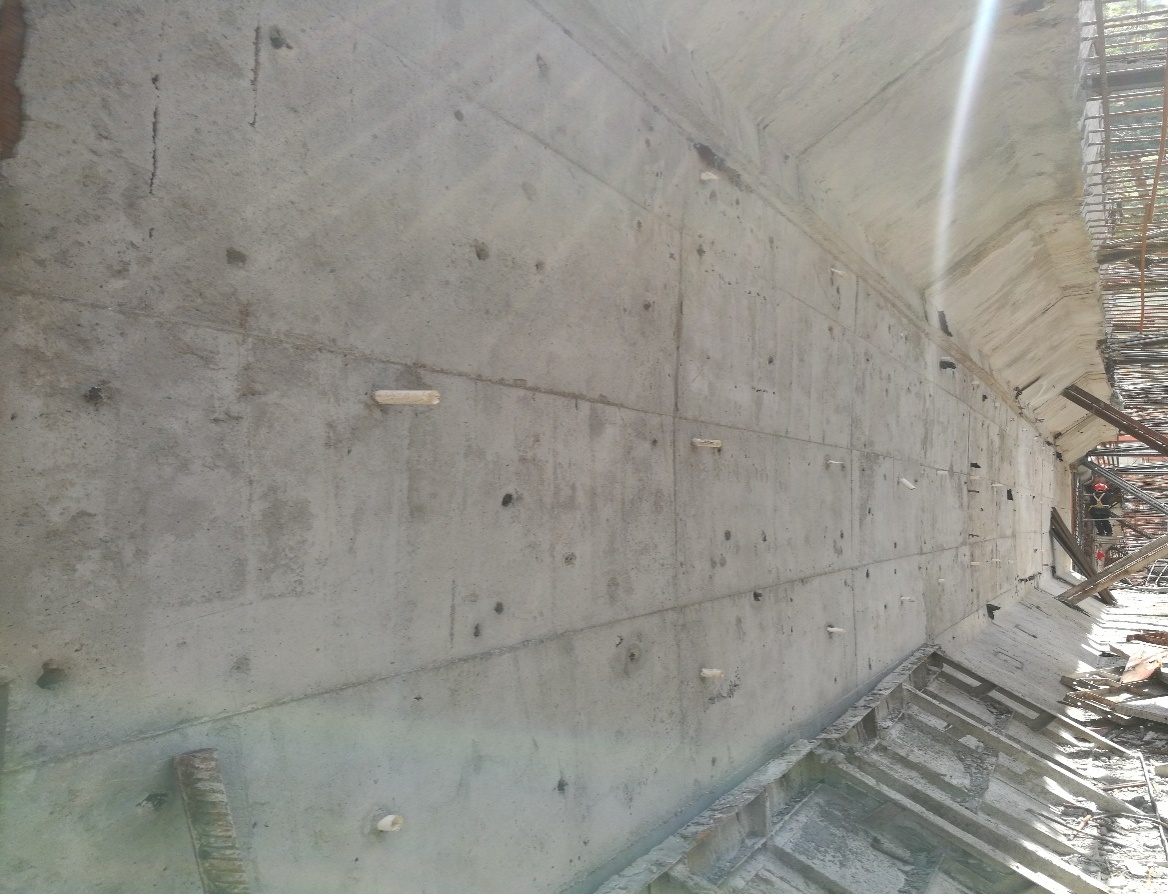 項目拱圈澆筑采用“兩環(huán)十二工作面”方式進行,兩岸對稱澆筑底板及腹板直至下環(huán)合龍,再兩岸對稱澆筑中腹板及頂板,直至上環(huán)合龍。興蜀公司項目指揮部從外包混凝土工序施工就開始制定質量管理要求,從模板、支架安裝質量,到鋼筋制作與安裝、混凝土配合比、混凝土澆筑工藝、養(yǎng)護等各環(huán)節(jié)嚴格要求,把高標準、嚴要求始終貫穿于項目建設全過程,在施工澆筑過程中做到對稱、均衡,并根據(jù)混凝土砂細度模數(shù)、坍落度、水灰比等及時調整,保證達到最佳施工配合比。與此同時,項目指揮部還要求監(jiān)控單位及時對拱圈縱、橫向的變形進行多點觀測、全面控制,做到項目施工線形、應力始終處于容許范圍之內(nèi),確保優(yōu)質完成建設任務。