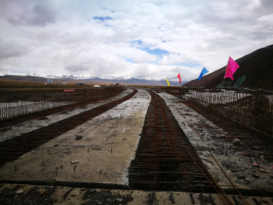 色塘大橋為全線最長橋梁,全長206米,是項目關(guān)鍵節(jié)點工程之一。橋梁上部結(jié)構(gòu)為10-20米預(yù)應(yīng)力小箱梁,下部結(jié)構(gòu)為樁柱式基礎(chǔ)。項目自進(jìn)場以來,興蜀公司帶領(lǐng)全體參建單位克服高原、高寒、地質(zhì)多變、人員流動性大等諸多困難,嚴(yán)格實施項目精細(xì)化管理,嚴(yán)把安全、質(zhì)量關(guān),團結(jié)一心,奮力拼搏,采用智能張拉大循環(huán)壓漿先進(jìn)工藝努力推進(jìn)工程建設(shè),歷時4個月時間終于實現(xiàn)了TJ1標(biāo)全線大、中橋梁順利架設(shè)貫通,為下階段路面施工打下堅實基礎(chǔ)。