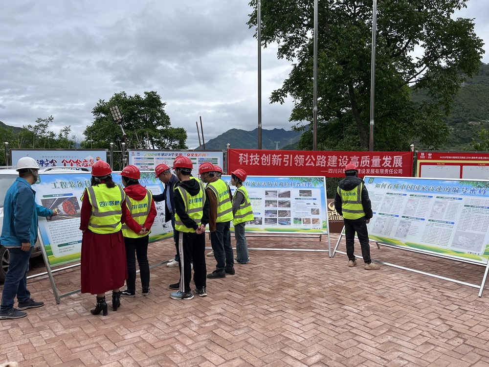 為深入學(xué)習(xí)貫徹習(xí)近平總書記重要指示精神,大力弘揚愛國、創(chuàng)新、求實、奉獻(xiàn)、協(xié)同、育人的科學(xué)創(chuàng)新精神,營造尊重科學(xué)、崇尚創(chuàng)新的社會環(huán)境,為建設(shè)科技強國匯聚智慧和力量。在2024年5月27日至6月2日全國“科技活動周”期間,興蜀公司總工辦精心籌劃,巧妙布置,會同九石路、瀘漢路指揮部在代建項目一線工地現(xiàn)場開展以“科技創(chuàng)新引領(lǐng)公路建設(shè)高質(zhì)量發(fā)展”為主題活動,活動通過布設(shè)交通科普展板,向一線施工人員科普宣傳了“在建公路泥石流災(zāi)害防災(zāi)避險”、“如何看懂中國國家高速的編號密碼”、“認(rèn)識TBM”方面知識。以豐富的圖文展示和宣傳資料,有效地傳達(dá)科技創(chuàng)新對工作和生活的重要性。同時,這些科普知識也可以提高施工人員對工地安全性正確識別,激發(fā)一線員工的創(chuàng)新動力,推動科技創(chuàng)新在實踐中的持續(xù)探索。