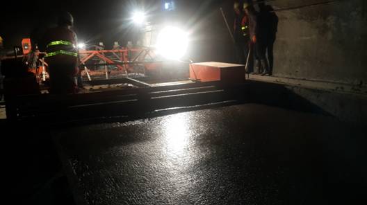 該次試驗段的鋪筑檢驗了施工的配合比、運輸、攤鋪、振搗、整平等施工組織配合效果,收集了溫度、混凝土養(yǎng)護等施工數(shù)據(jù),為下一步實施理塘、高爾寺隧道路面大面積施工提供了科學(xué)合理的施工指導(dǎo)。