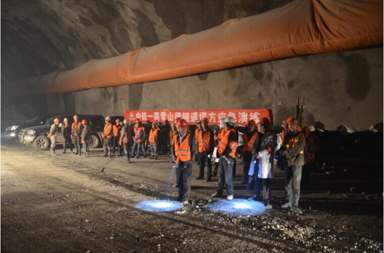 為提高全體參建人員的安全意識(shí),強(qiáng)化項(xiàng)目的安全應(yīng)急處置水平,2014年5月19日至20日,結(jié)合雪山梁隧道工程特點(diǎn),分別在隧道A、B標(biāo)段有針對(duì)性地開展了隧道關(guān)門坍塌,涌水、突泥等突發(fā)事件應(yīng)急演練。