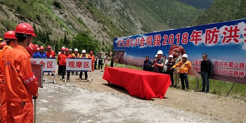 興蜀公司G544線川主寺至九寨溝縣城段災(zāi)后恢復(fù)重建工程位于九寨溝地震核心區(qū)域,次生災(zāi)害隱患風(fēng)險(xiǎn)較高,為進(jìn)一步提升參建人員的防汛意識(shí),提高防洪救災(zāi)應(yīng)急救援能力,5月25日,川九路建設(shè)指揮部在CJ1合同段黑河大橋施工現(xiàn)場(chǎng)開(kāi)展2018年度防洪搶險(xiǎn)應(yīng)急演練。九寨溝縣安監(jiān)局、防汛辦相關(guān)負(fù)責(zé)同志和興蜀公司川九路建設(shè)指揮部常務(wù)副指揮長(zhǎng)樊增彬親臨現(xiàn)場(chǎng)進(jìn)行指導(dǎo)。