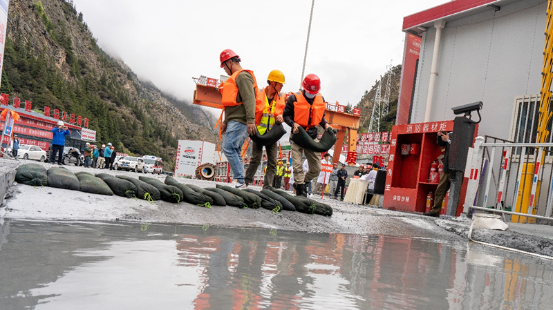 5月19日,興蜀公司代建國道351夾金山隧道項目開展2023年地質(zhì)災(zāi)害暨防汛減災(zāi)應(yīng)急救援演練。演練分兩階段開展,第一階段模擬因強降雨導(dǎo)致施工現(xiàn)場附近山體出現(xiàn)局部裂縫,存在滑坡隱患,現(xiàn)場先后展開人員緊急撤離、險情上報、山體變形監(jiān)測、險情處置等演練步驟;第二階段模擬因強降雨導(dǎo)致夾金河水急速上漲,嚴(yán)重威脅工人駐地和施工現(xiàn)場安全,現(xiàn)場迅速開展駐地及作業(yè)人員撤離危險區(qū)域、險情上報、堆碼沙袋、河道無人機巡查、水位實時監(jiān)測等演練步驟。通過此次演練活動,進一步檢驗了項目地質(zhì)災(zāi)害應(yīng)急救援預(yù)案的可行性,形成了統(tǒng)一領(lǐng)導(dǎo)、科學(xué)決策、處置有序的應(yīng)急管理系統(tǒng),顯著提升了項目應(yīng)對突發(fā)地質(zhì)災(zāi)害事件和風(fēng)險防控能力。小金縣應(yīng)急管理局、縣交通運輸局、達維鎮(zhèn)人民政府有關(guān)部門、夾金山醫(yī)療保障點、夾金山隧道項目各參建單位共60余人參加本次應(yīng)急演練。