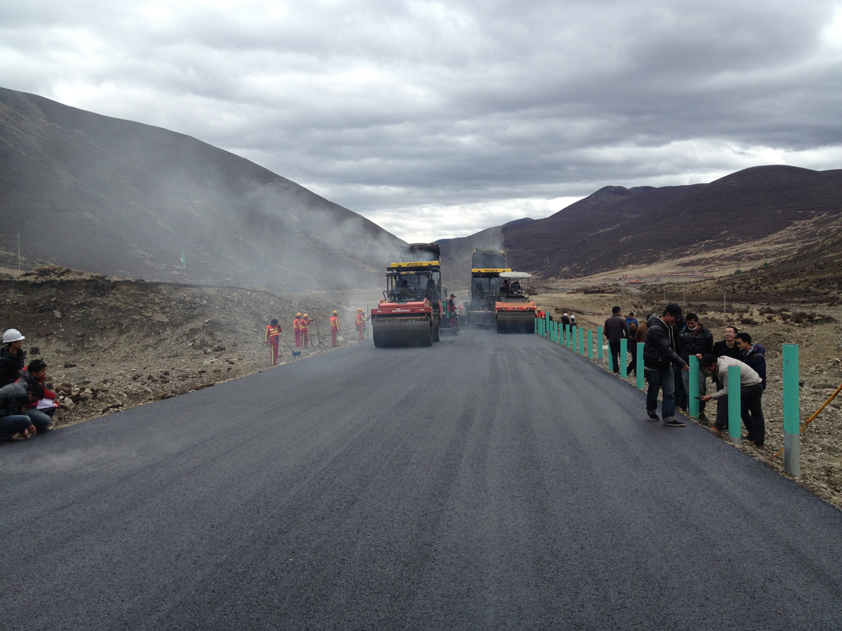 本次鋪筑的瀝青上面層試驗(yàn)段全長1700米,厚4厘米,采用細(xì)粒式AC-13瀝青混凝土。興蜀公司理亞路指揮部高度重視此次試驗(yàn)段的鋪筑工作,為確保一次性鋪筑成功,組織監(jiān)理、監(jiān)理試驗(yàn)室及施工單位進(jìn)行了技術(shù)交底,并要求施工單位全體參鋪人員就關(guān)鍵環(huán)節(jié)、鋪筑細(xì)節(jié)等進(jìn)行反復(fù)推演。經(jīng)過現(xiàn)場檢測,厚度、壓實(shí)度、平整度等重要技術(shù)指標(biāo)均達(dá)到了設(shè)計(jì)要求。