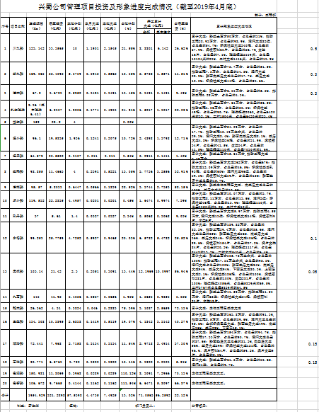 興蜀公司管理項目投資及形象進(jìn)度完成情況(截至2019年4月底)