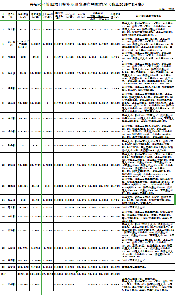 公司管理項(xiàng)目投資及形象進(jìn)度完成情況(截至2019年8月底)
