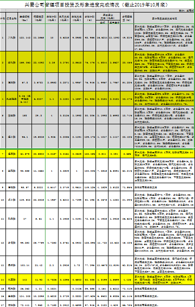 興蜀公司管理項(xiàng)目投資及形象進(jìn)度完成情況(截至2019年10月底)