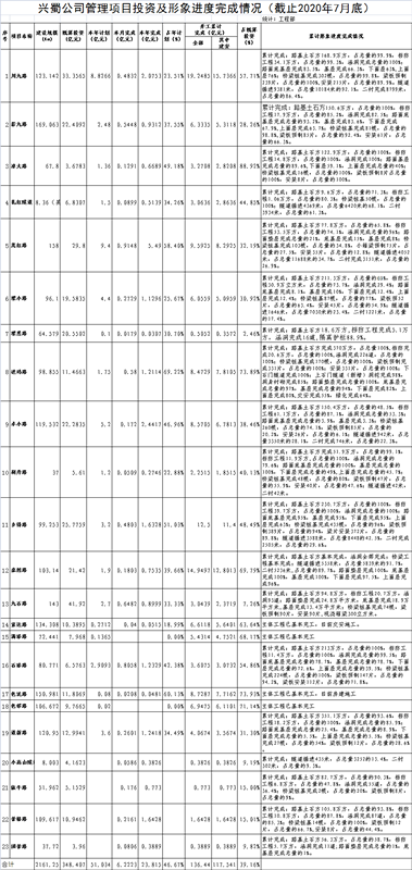 興蜀公司管理項(xiàng)目投資及形象進(jìn)度完成情況(截至2020年7月底)
