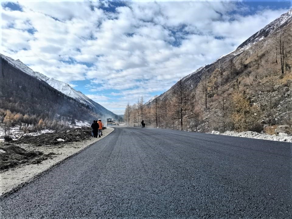 11月30日,小金段完成瀝青混凝土下面層鋪筑,正式轉(zhuǎn)入瀝青上面層施工工序,計劃12月底小金段完成除隧道外全部瀝青路面鋪設(shè)。