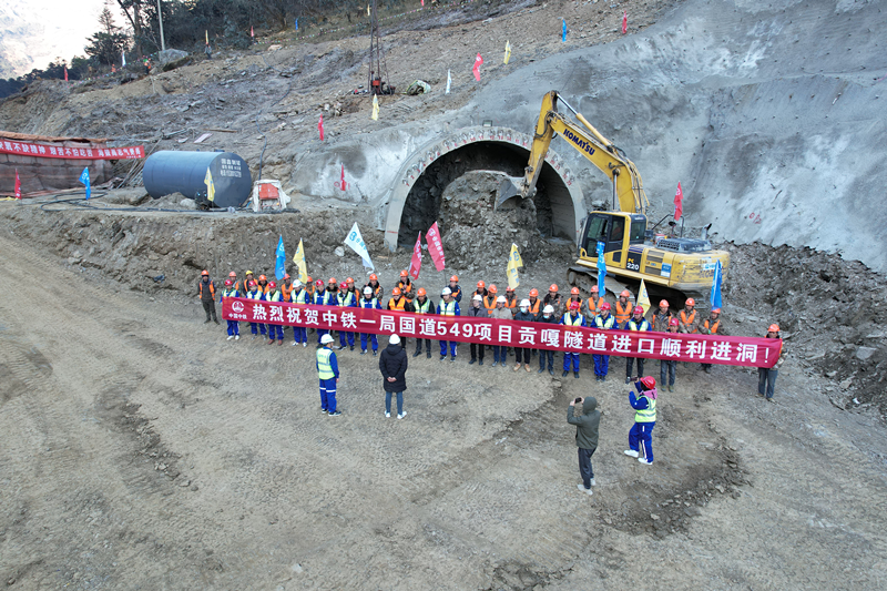 2022年12月4日,興蜀公司代建國(guó)道549線九石路貢嘎隧道進(jìn)口順利提前10個(gè)月進(jìn)洞施工。貢嘎隧道是全線控制性工程,主洞長(zhǎng)9.961km,平導(dǎo)洞長(zhǎng)9.584km,是目前國(guó)內(nèi)最長(zhǎng)的單洞對(duì)向行車特長(zhǎng)隧道。隧道圍巖地質(zhì)條件差,存在巖爆、大變形、突水等安全隱患,施工難度大、安全風(fēng)險(xiǎn)高。