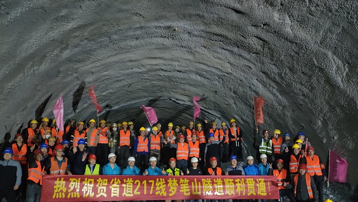 2023年9月3日上午9時(shí),歷經(jīng)五年,1800多個(gè)日日夜夜連續(xù)奮戰(zhàn),由四川興蜀公司代建管理的省道217線夢(mèng)筆山特長(zhǎng)隧道實(shí)現(xiàn)順利貫通。夢(mèng)筆山隧道全長(zhǎng)3359米,地處阿壩州馬爾康市、小金縣,隧道以碳質(zhì)板巖、碳質(zhì)千枚巖夾變質(zhì)砂巖為主,圍巖級(jí)別均為V級(jí),屬高寒、高海拔、軟巖隧道(隧道海拔高程3800m)。隧道建設(shè)面臨“兩低”(低氧含量、低大氣壓)、“三高”(高寒冷、高海拔、高地應(yīng)力)、“四極其”(地質(zhì)條件極其復(fù)雜、氣候條件極其惡劣、生態(tài)環(huán)境極其脆弱、建設(shè)條件極其困難)的施工環(huán)境。在建設(shè)過程中遭遇圍巖復(fù)雜多變、持續(xù)軟巖大變形、涌水突泥等多項(xiàng)建設(shè)難題,尤其是持續(xù)受到軟巖大變形地質(zhì)病害困擾,導(dǎo)致隧道施工工效極低、施工組織難度大。參建各方積極應(yīng)對(duì),攻堅(jiān)克難,建設(shè)中積極應(yīng)用新技術(shù),不斷總結(jié)分析、優(yōu)化設(shè)計(jì)施工組織方案,不斷創(chuàng)新施工工法,最終全面攻克隧道建設(shè)難題,實(shí)現(xiàn)隧道安全零事故順利貫通。