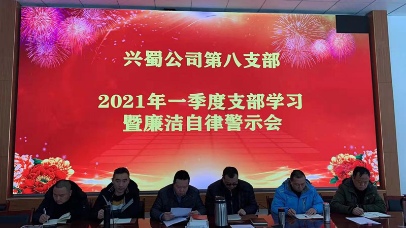 2021年3月6日,興蜀公司第八黨支部組織召開第一季度支部學(xué)習(xí)暨廉潔自律警示會(huì),第八黨支部全體黨員、入黨積極分子參加學(xué)習(xí)會(huì)。